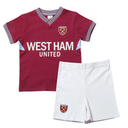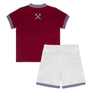 Let your little Hammer show their team spirit with this officially licensed baby t-shirt and shorts set. Made from soft 100% cotton for all-day comfort, it features an elasticated waistband and v neck t-shirt for an easy fit. Designed in the iconic claret home colours with the official club crest on both pieces a must-have for every young West Ham fan. Finished with popper closures on the neck up to age 12-18 months.